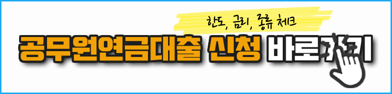 하단 링크에서 공무원연금공단 대출 신청 및 금리, 한도, 종류, 조건 등 상세 정보를 체크해보시기 바랍니다.