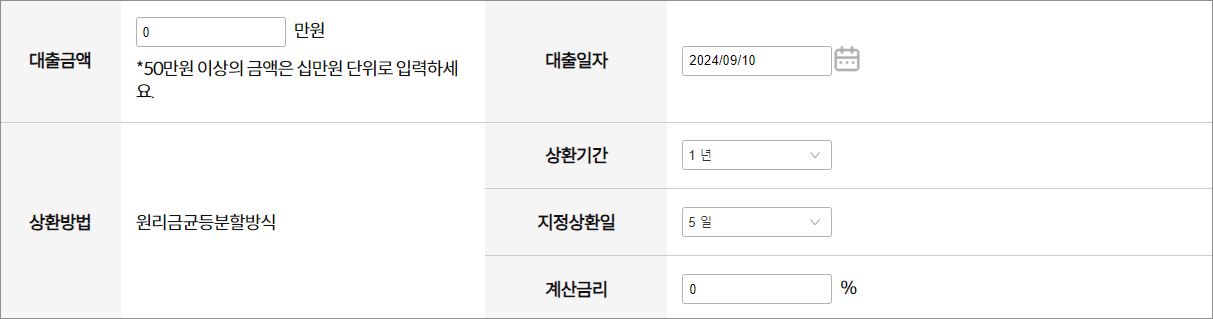 대출을 진행할 때는 매월 상환해야 할 금액을 미리 계산해보는 것이 중요합니다. 상환 계획을 세우지 않고 대출을 받으면 연체될 수 있으므로, 하단 월상환금액을 정확히 계산해 계획 세우시기 바랍니다.
