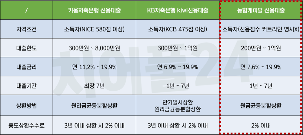 농협캐피탈은 키움저축은행, KB저축은행과 비교했을 때 조건이 상대적으로 유리하다는 평가를 받고 있습니다. 소득 증빙이 간단하며, 직장 유형에 관계없이 신청이 가능한 점이 강점으로 꼽힙니다. 게다가 타사에 비해 한도가 높게 설정되는 경우가 많아 목돈이 필요한 상황에서 활용도가 높습니다.