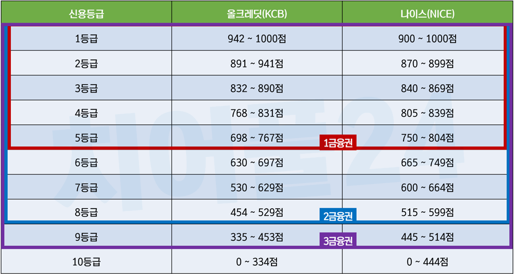 - 3금융권(대부업체): 신용점수 350점 이상