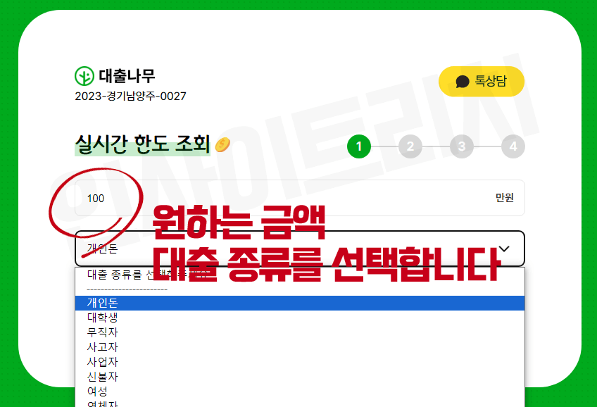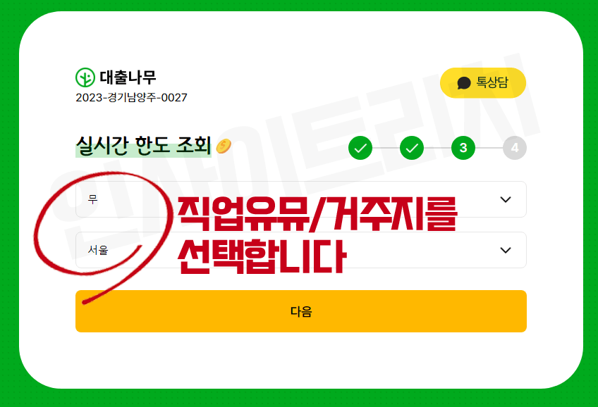 대출나라 월변, 일수대출 시, 원하는 한도, 종류, 나이, 성별, 거주지, 직업유무를 입력합니다. 다만 모든 정보를 팩트 그대로 쓰기 보다는 포장을 하는 것이 좋습니다.