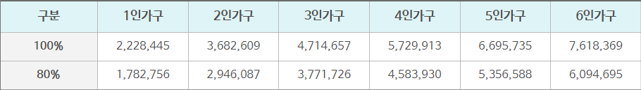 중위소득 80% 이하는 가구에 따라 차이가 있습니다.