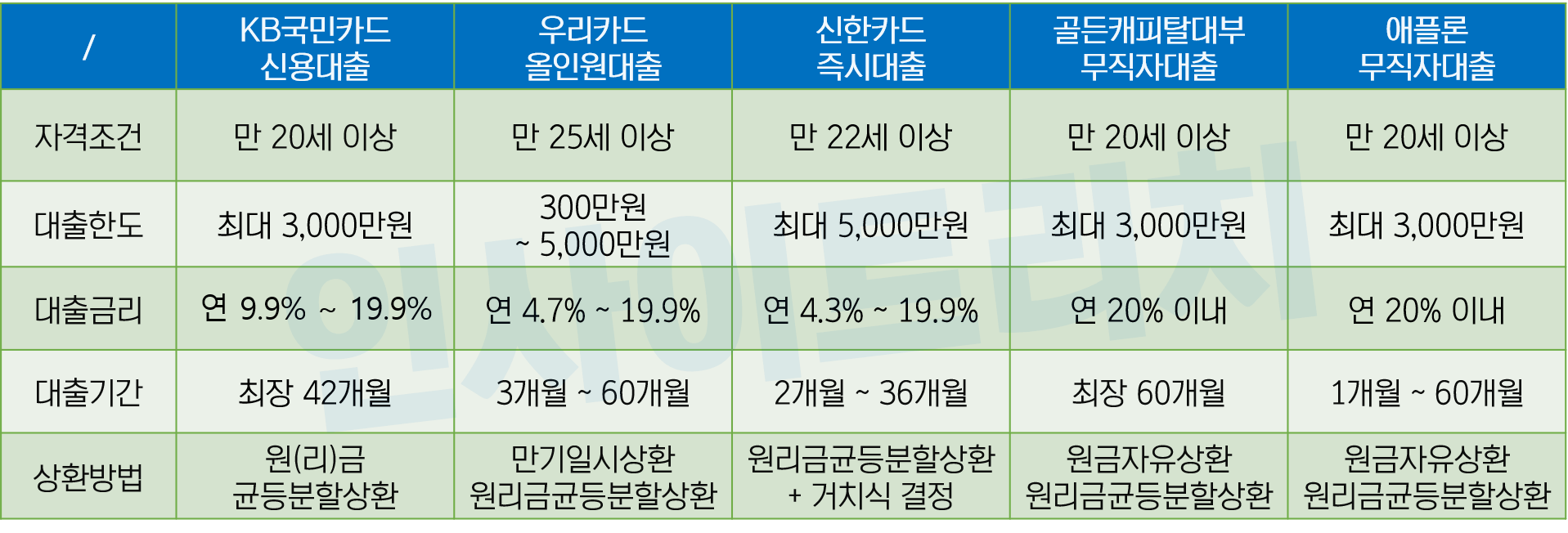 KB국민카드 신용대출은 신용카드를 보유하지 않은 무직자를 대상으로 만들어진 상품입니다. 회원 가입, 카드 개설 등 번거로운 절차가 없습니다. 더불어 복잡한 서류 없이 당일 급전으로 쓸 수 있습니다.
