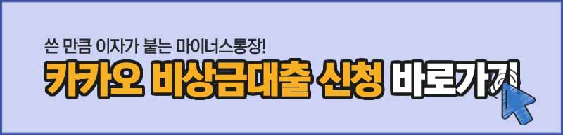 카카오 비상금대출은 마이너스통장으로 운용되는 상품입니다. 자신이 원하는 만큼 쓰고, 쓴 만큼의 이자가 붙기 때문에 합리적인 운용이 가능합니다. 모바일로 60초면 승인결과가 나오며, 바로 입금 받을 수 있습니다.