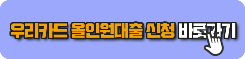 - 대출기간 : 3 ~ 60개월(36개월 초과는 우리카드 내부심사 통과자만 가능)
