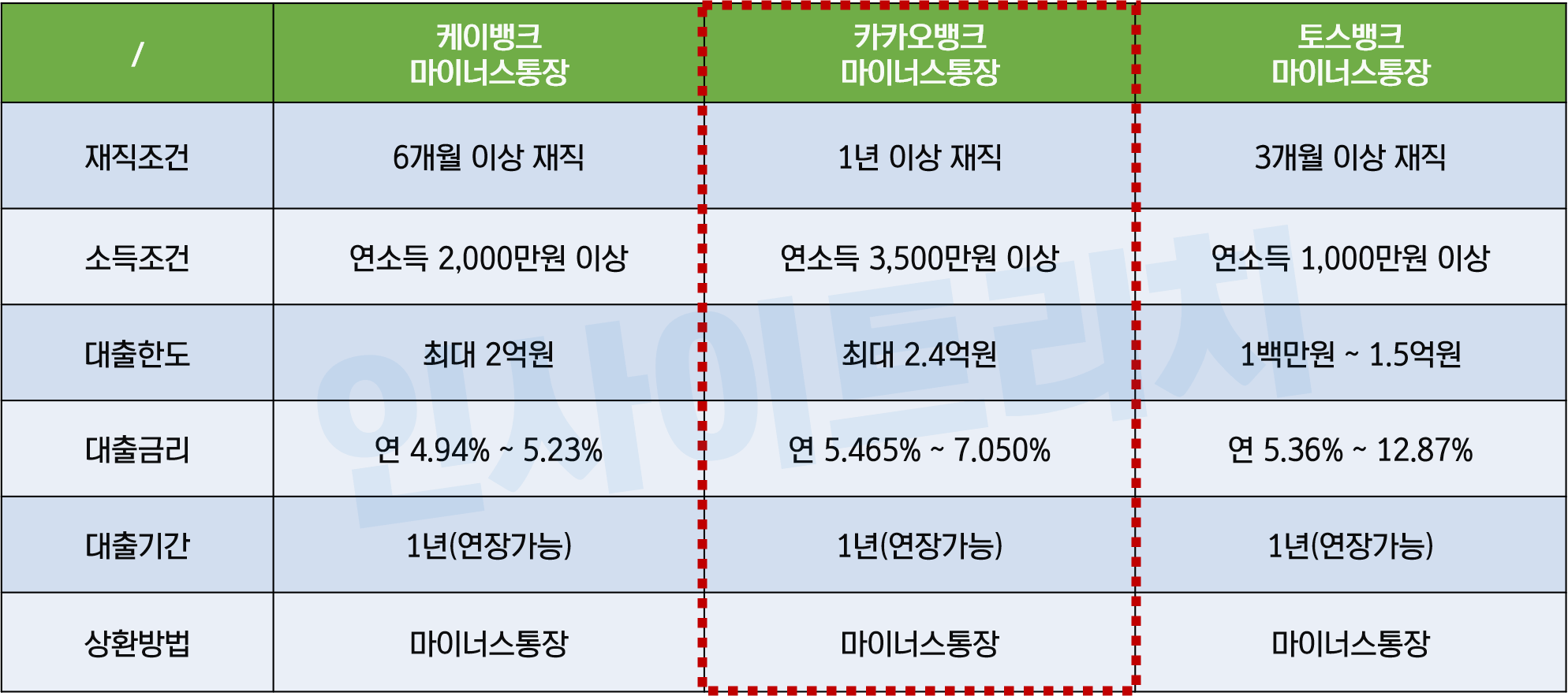 카카오뱅크 마이너스통장은 토스뱅크, 케이뱅크 등 다른 1금융권 상품들과 비교했을 때 조건이 좋은 편일까요?