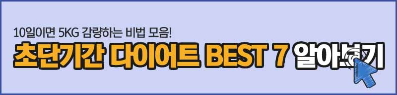 하단 링크에서 10일이면 5KG 감량도 거뜬한 초단기간 다이어트 방법 BEST 7을 참고하시기 바랍니다.