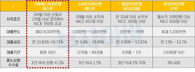 다만 대출한도, 금리는 대출신청자의 조건(신용점수, 소득)에 따라 차이가 있습니다. 이에 따라 대표 상품은 비교해 보고 결정하는 것이 좋습니다. 하단 후기를 참고하시기 바랍니다.