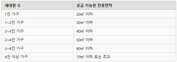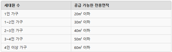 세대원 수에 따라 배정되는 주택 면적이 달라지며, 가구원이 많을수록 넓은 면적을 배정받을 수 있습니다.
