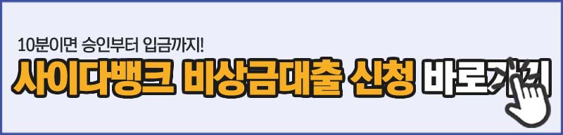 사이다뱅크 비상금 대출은 무직자도 받을 수 있는 무서류 자동심사 상품입니다. 새벽에도 핸드폰으로 손쉽게 대출 진행이 가능하며, 자격조건도 까다롭지 않아 유용합니다. 비상금 대출인 만큼 기본자격만 되면 10분 이내 입금 받을 수 있습니다.