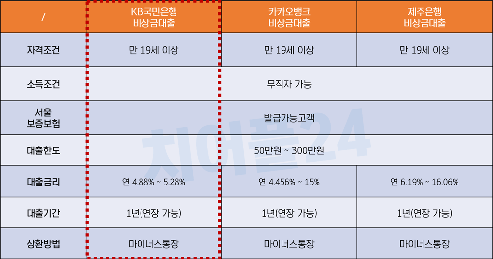 카카오뱅크, 제주은행 등 인기 있는 비상금대출 상품과 비교했을 때, 국민은행 비상금대출은 낮은 금리가 큰 장점입니다.